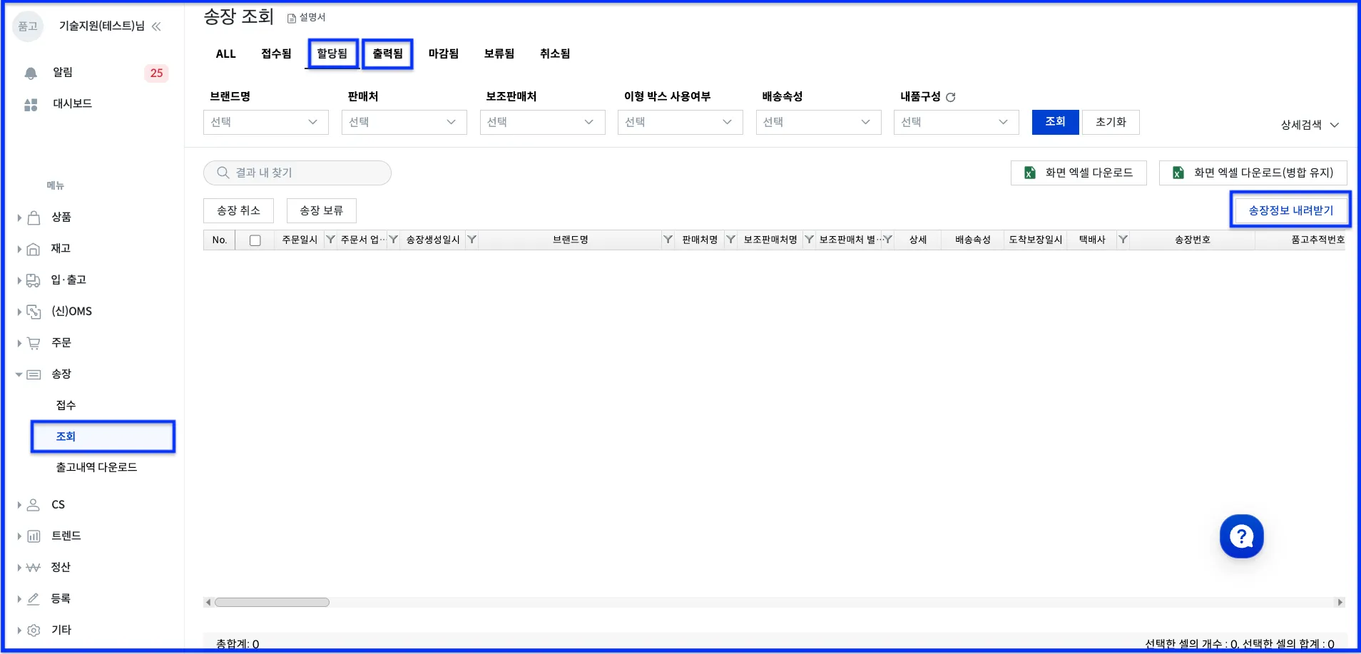 핸디봇 기준, 운송장 번호는 할당됨 이후로 확인 가능합니다.