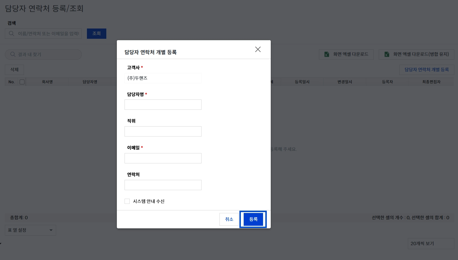 등록 → 담당자 연락처