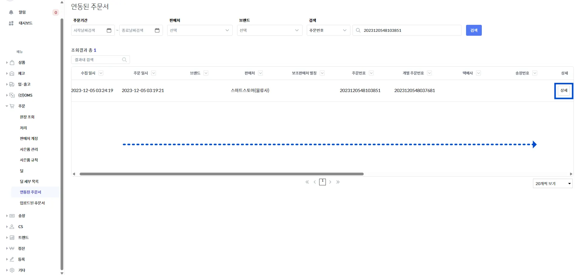 [2] 품고 나우 > 주문 > 연동된 주문서에서 주문을 검색해 주세요.