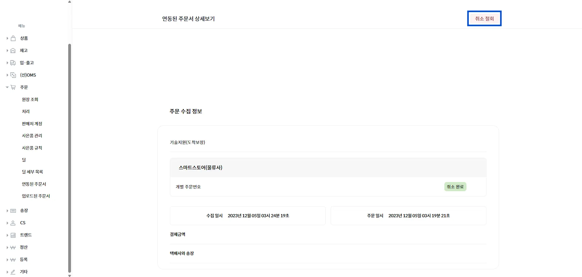 [3] 취소 철회가 필요한 주문 건의 상세를 클릭해 주세요.