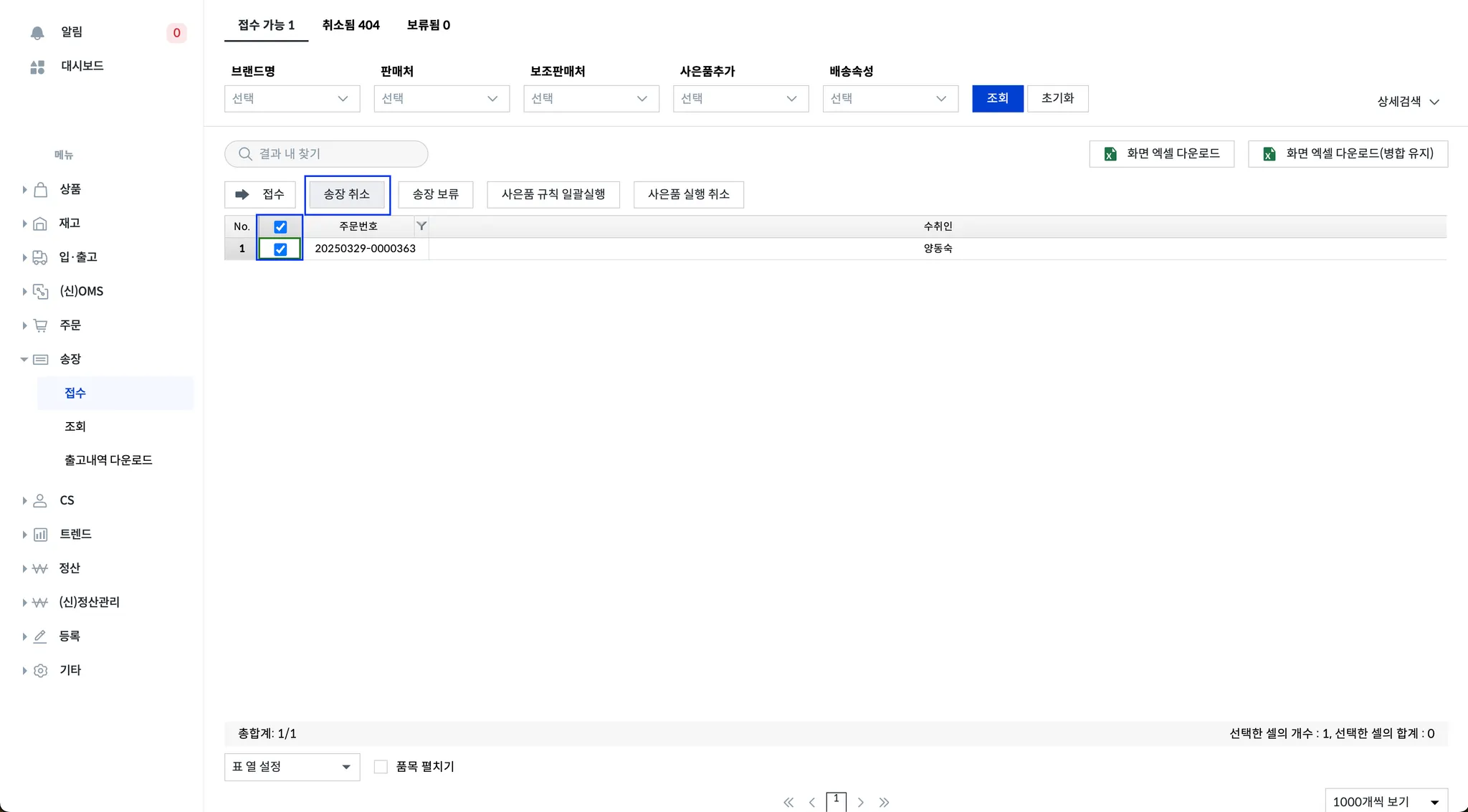 [1] 품고 나우 > 송장 > 접수 > 접수 가능