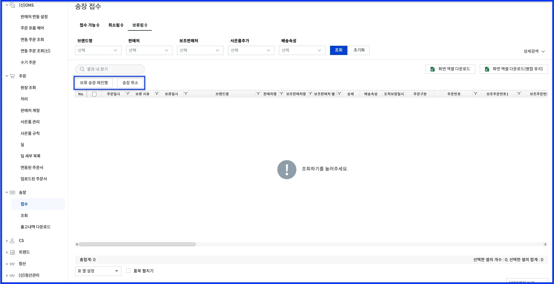 보류됨 탭의 [보류 송장 재진행] [송장 취소] 버튼 제거