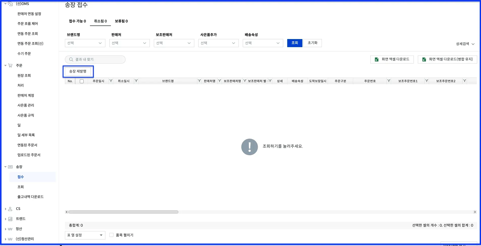 송장 > 접수 화면의 기존에 있던 기능 버튼이 사라졌나요?