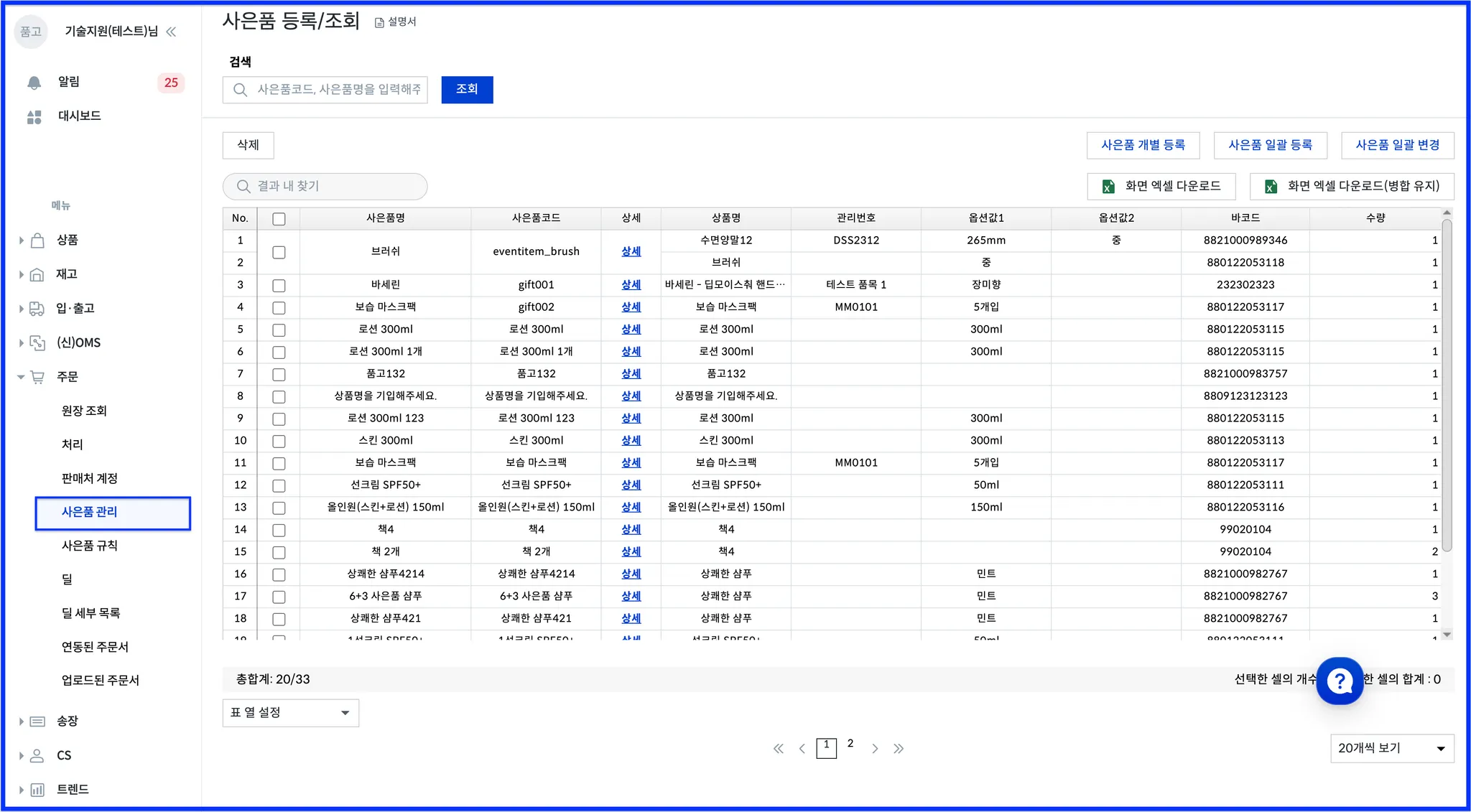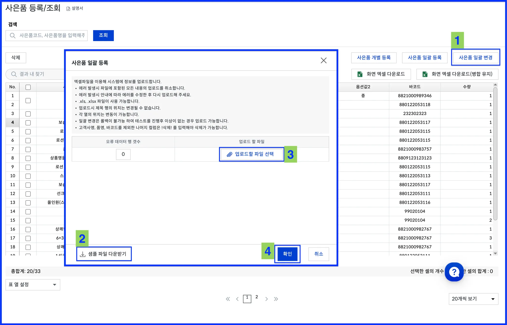 < 사은품 일괄 등록 >