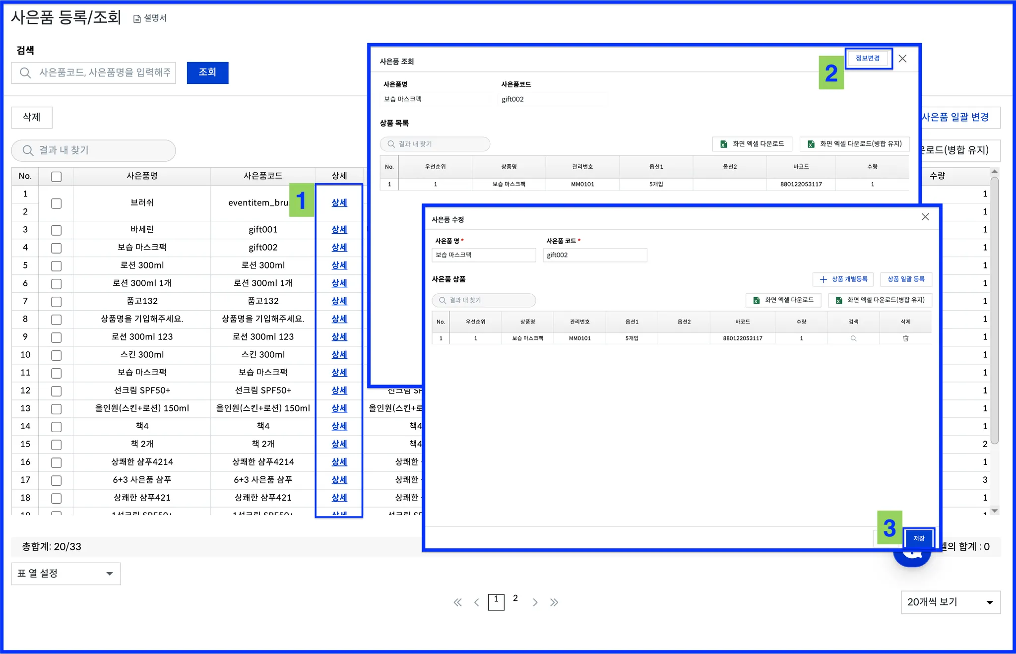 사은품 정보 수정 후, 저장