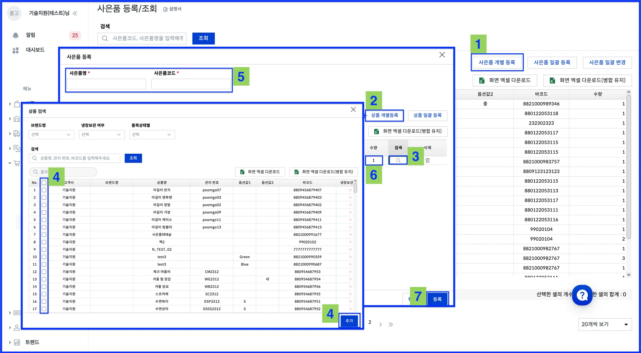 사은품 개별 등록 클릭