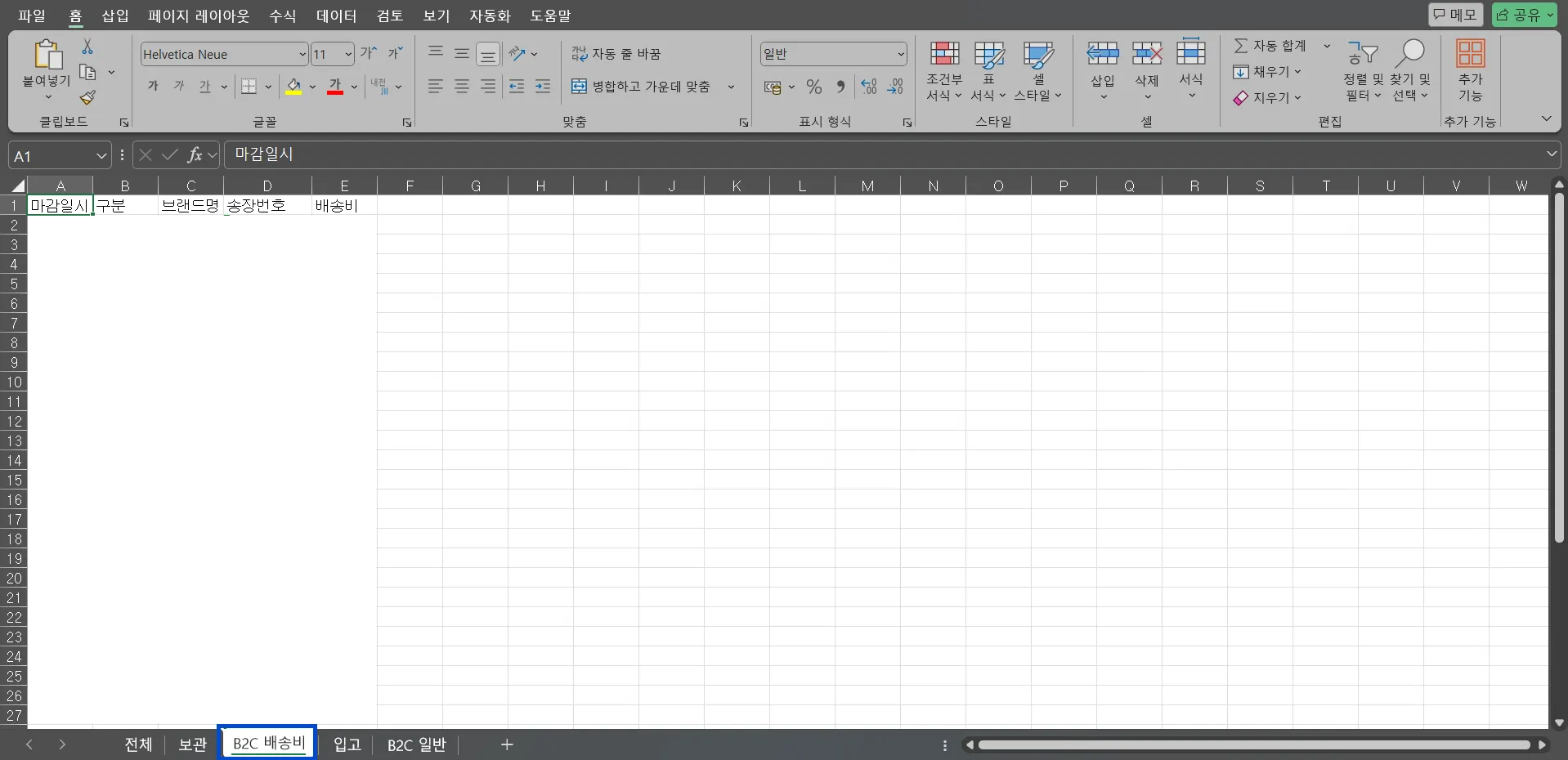 [4] 다운로드 후 파일 내 B2C 배송비 탭 확인