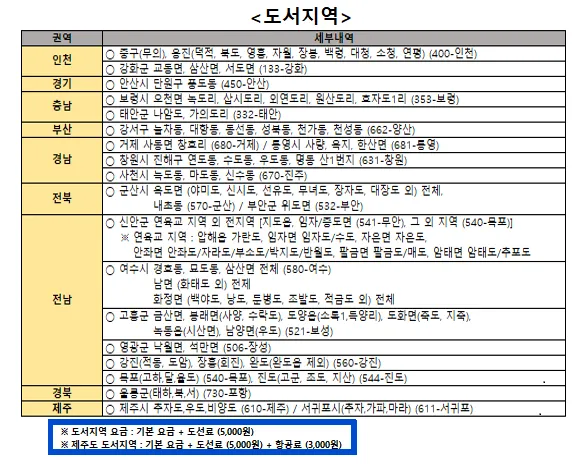 제주 및 도서산간 지역 배송비 문의