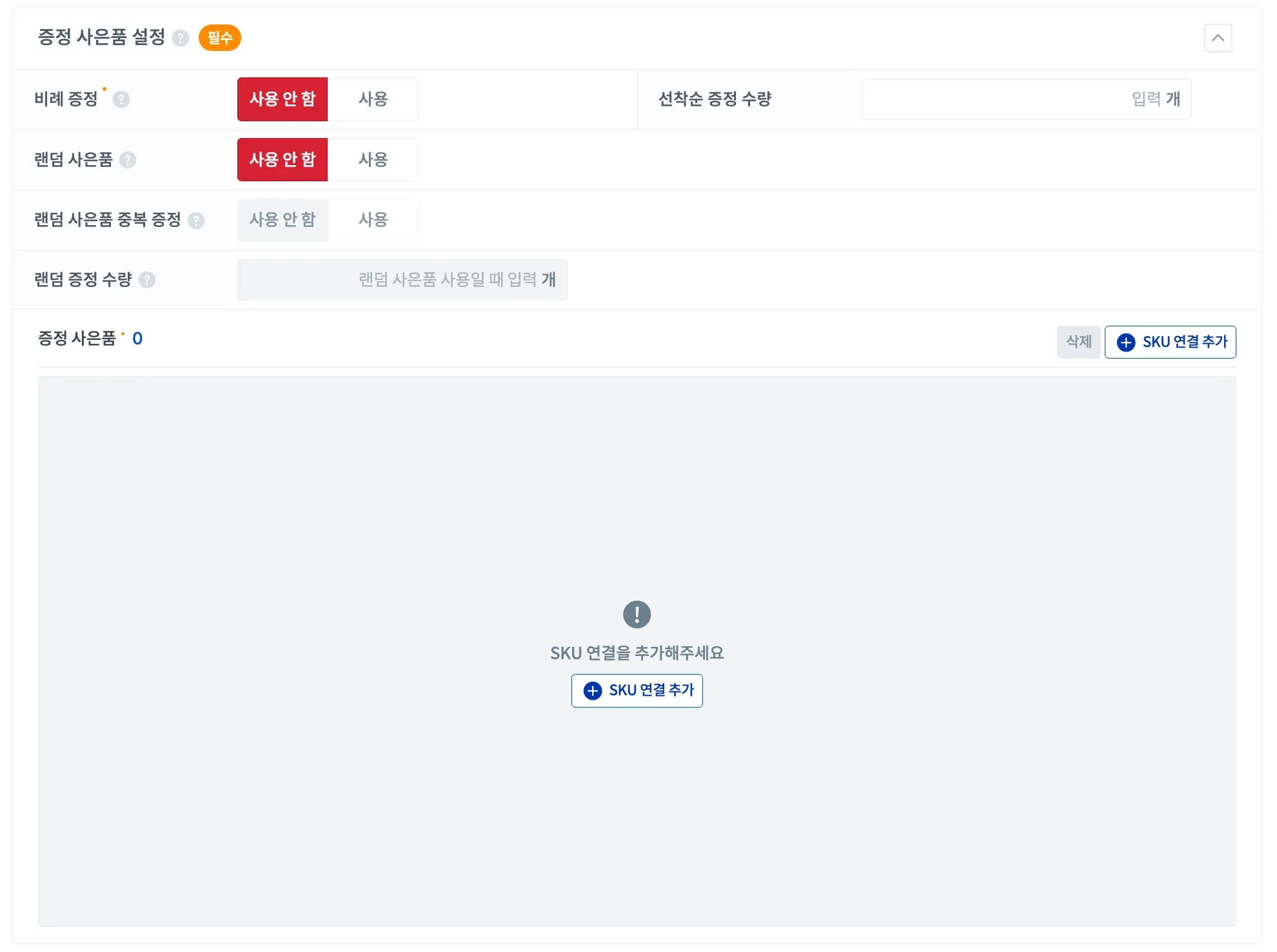 랜덤 증정 수량 | 증정 사은품 그룹 중 랜덤으로 부여할 수량을 설정해 주세요.