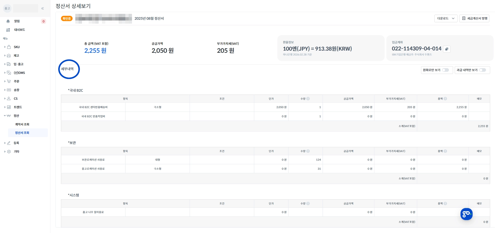 [상세보기] 버튼 누르면 세부내역 확인이 가능합니다.