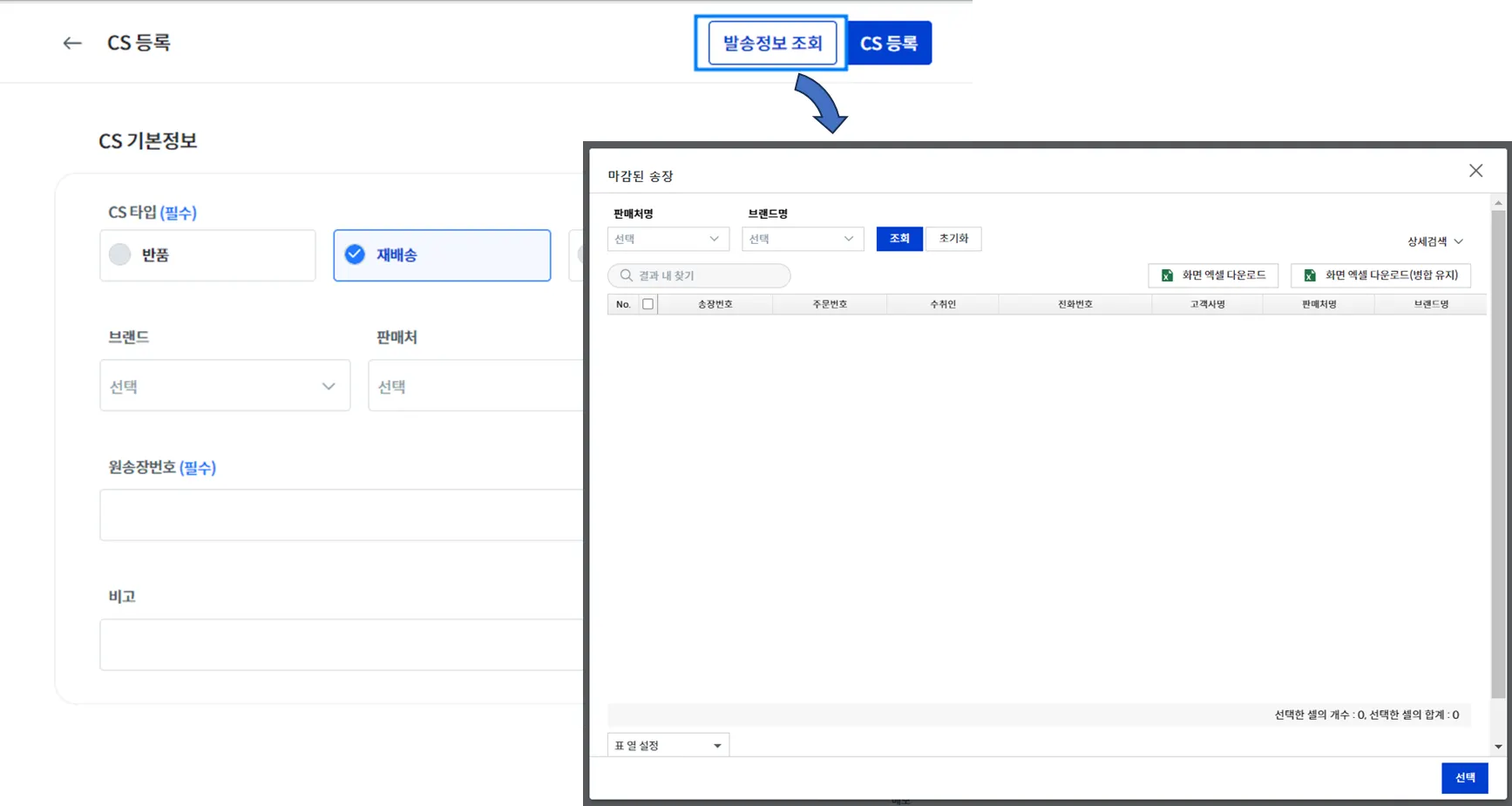[2] 발송정보를 통해 품고에서 출고한 정보 불러오기