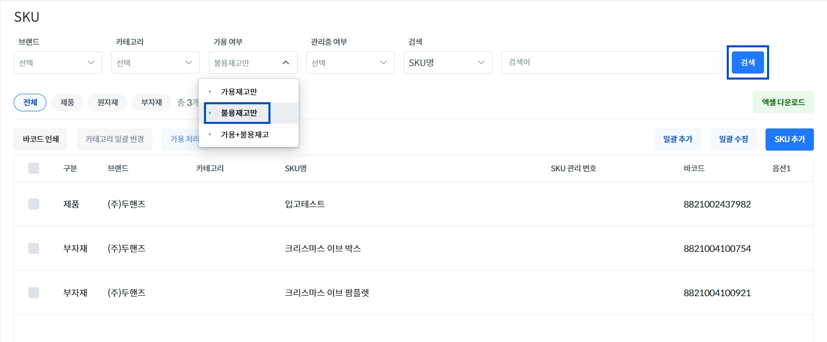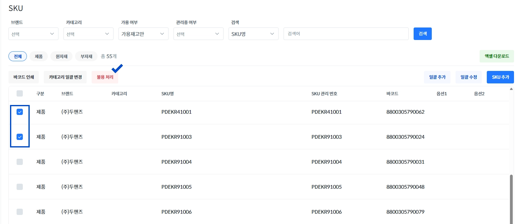 SKU 불용 처리하기