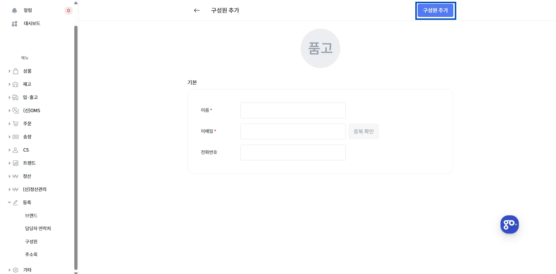 [2] 기본 정보 입력 > 구성원 추가 클릭