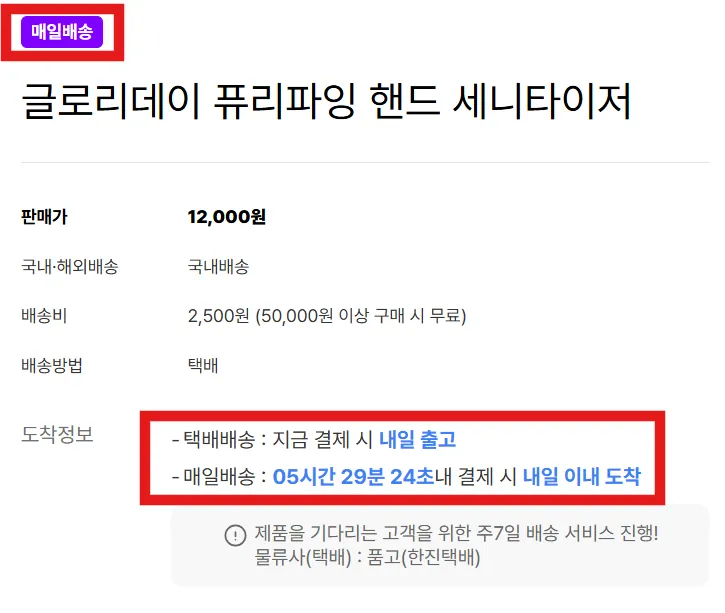 동일한 상품에 매일배송과 일반배송이 동시에 적용되면 상세페이지에 ‘도착정보’가 중복 노출될 수 있습니다.