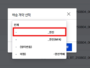 센터마다 노출되는 ‘배송 계약명’ 이 조금 다를 수 있습니다.