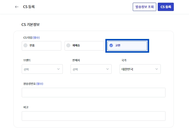 CS 타입을 [교환]으로 선택해 주세요.