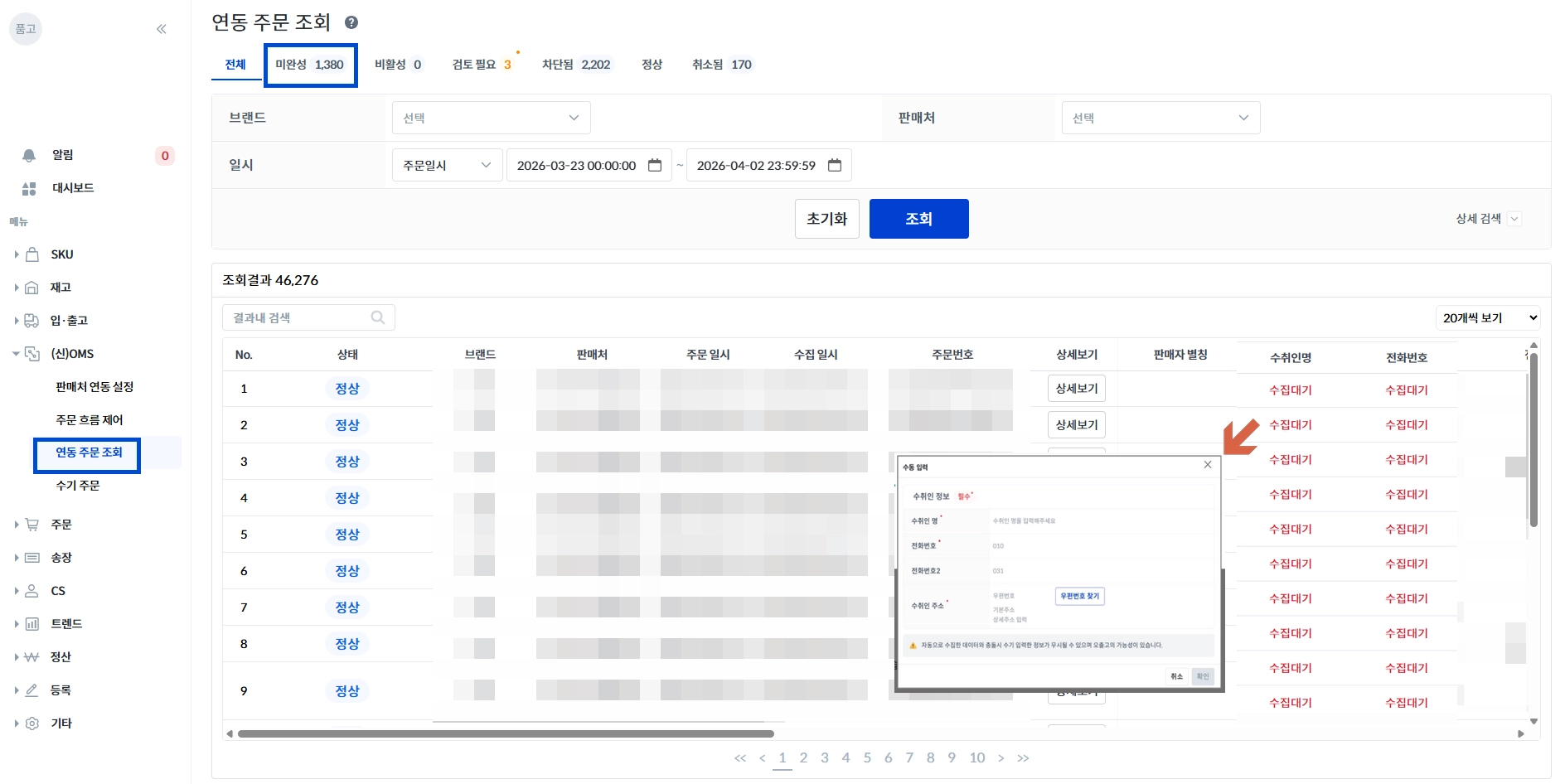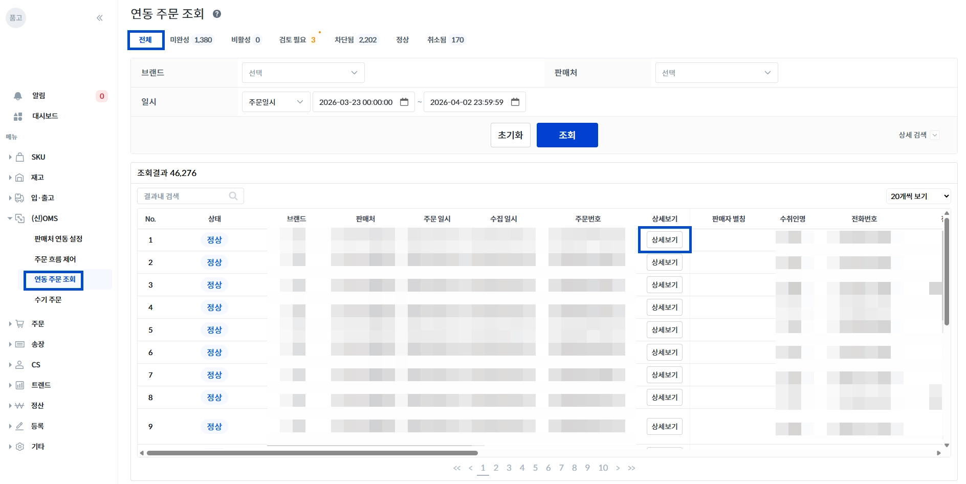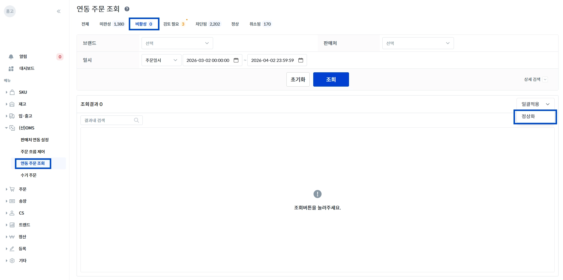 [1] (신)OMS → 연동 주문 조회