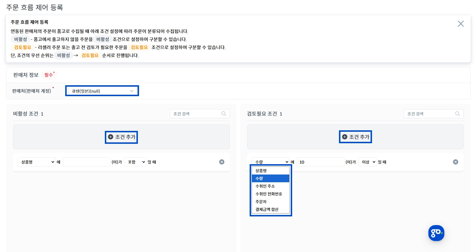 주문 흐름 제어 조건 설정 하기