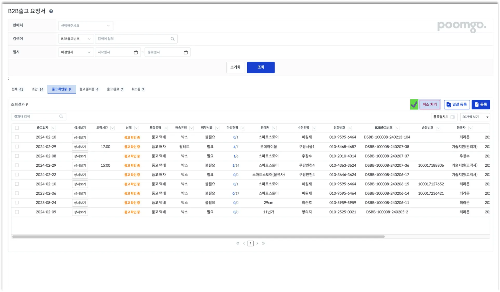 상세 보기 : 생성한 B2B 출고 건에 상세 내용 확인 가능