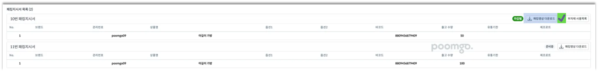 출고준비중 : 품고에서 피킹과 패킹 작업을 진행 중인 상태