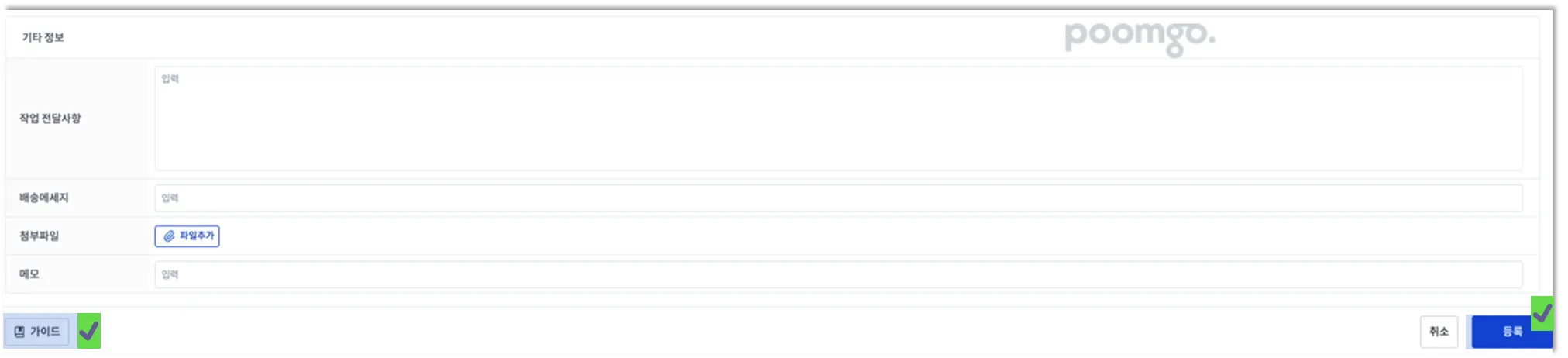 작업 전달 사항 B2B 출고 작업에 따른 요청사항을 기재해 주세요.