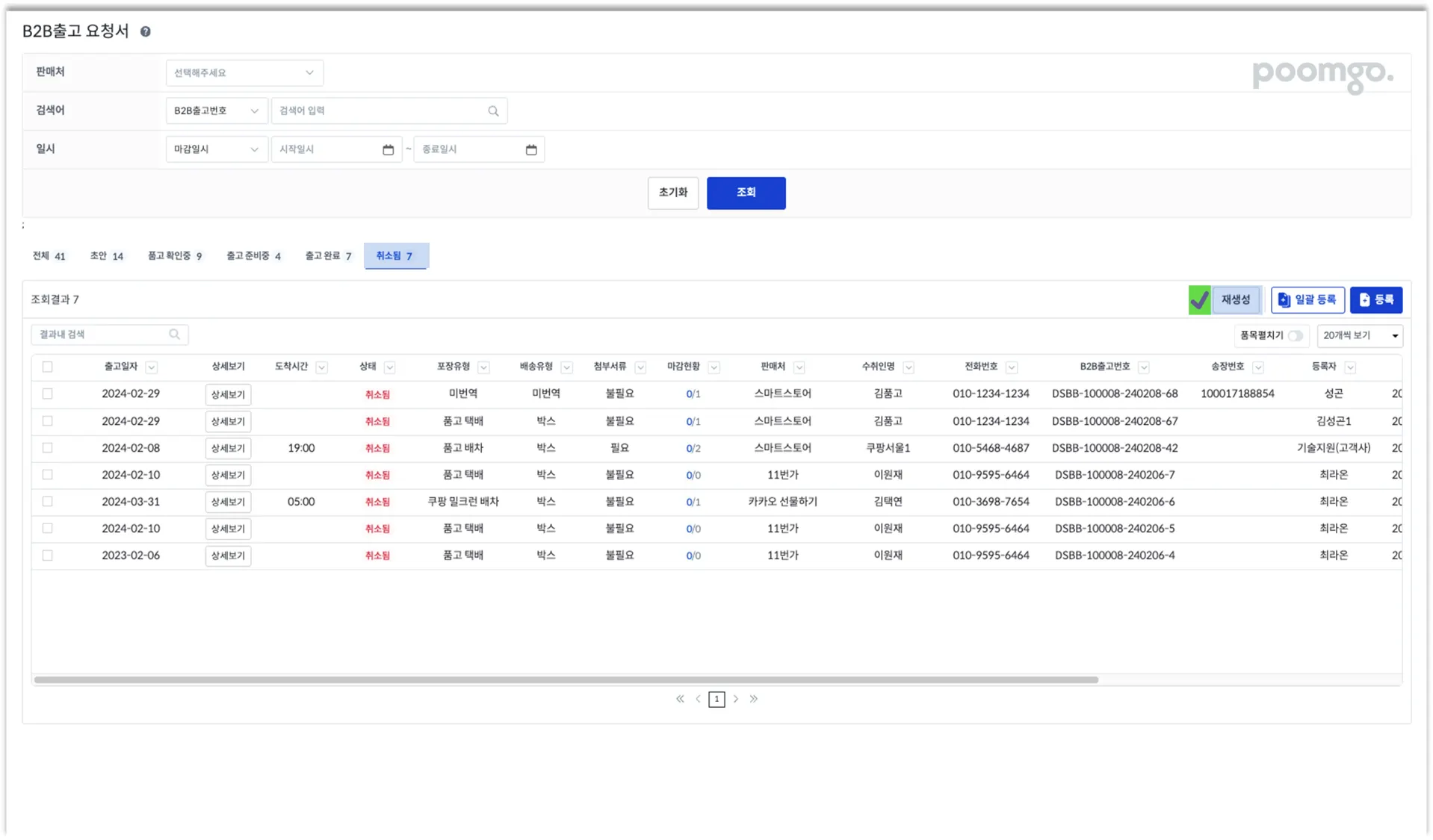 단, B2B 출고 번호는 변경되며, 재생성 기준으로 출고 일자는 변경해 주셔야합니다.