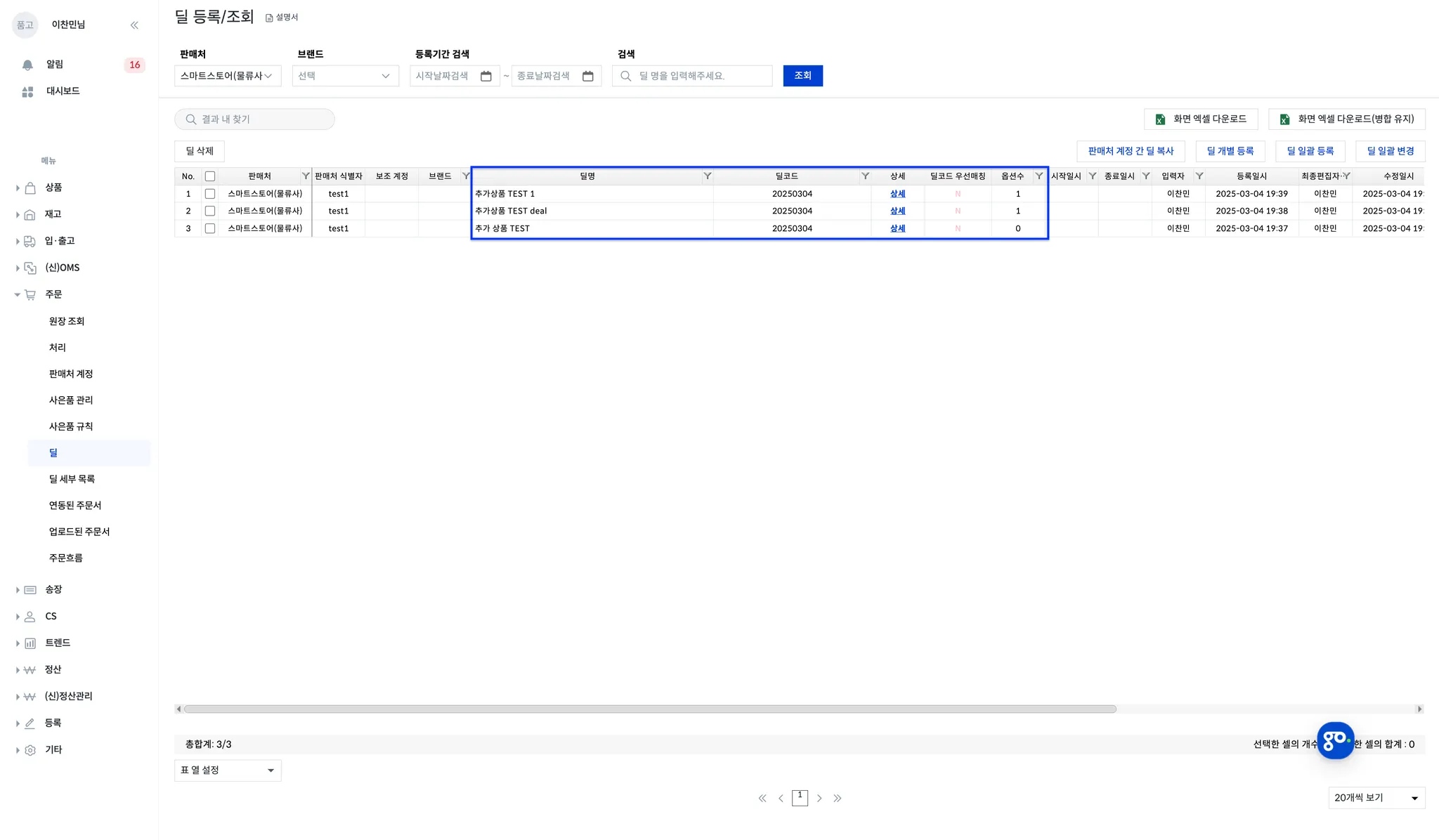 동일한 딜코드에 옵션이 설정된 추가상품 딜을 확인할 수 있습니다.