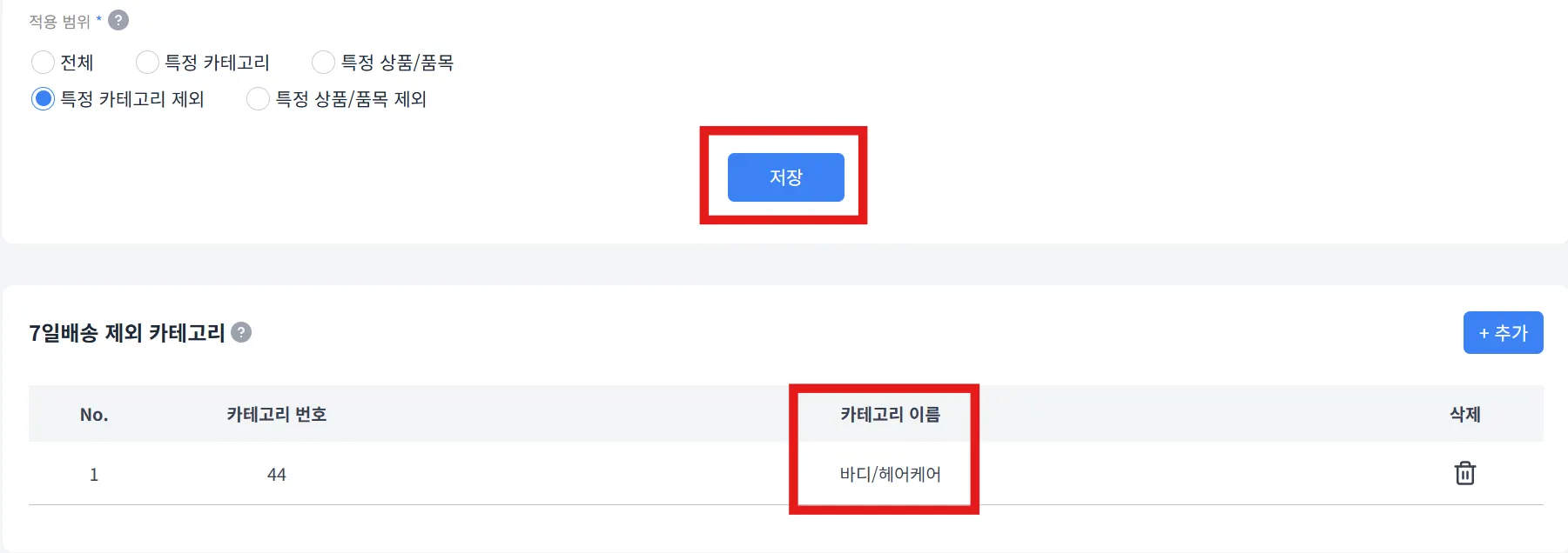 특정 카테고리 제외 : 선택한 카테고리를 제외하고 적용