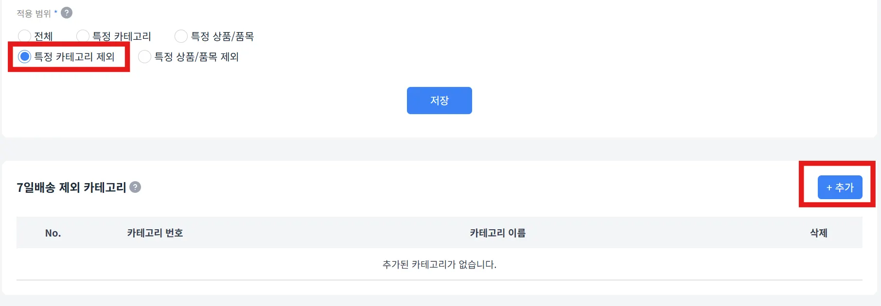 특정 카테고리 제외를 선택하여 우측에 ‘+추가’를 클릭해 주세요.