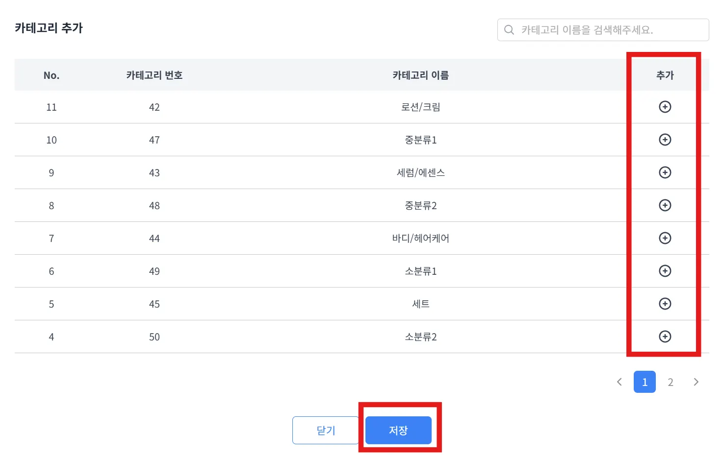 추가할 카테고리를 선택한 후 ‘저장’을 클릭해 주세요.