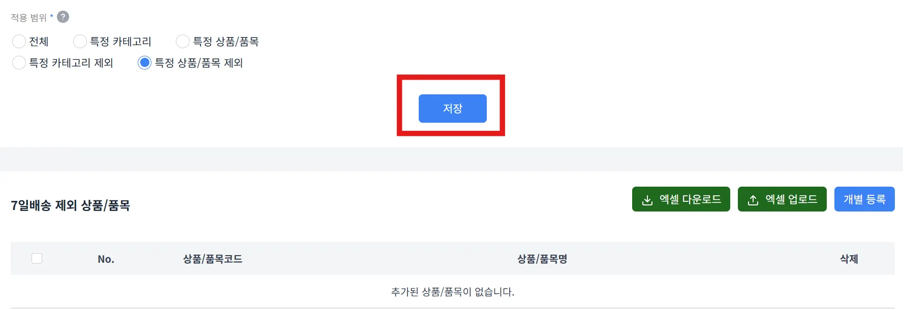 특정 상품/품목 제외 : 선택한 상품/품목을 제외하고 적용