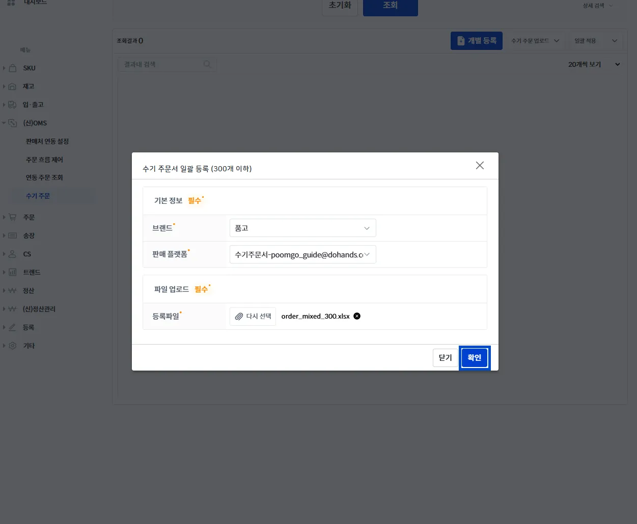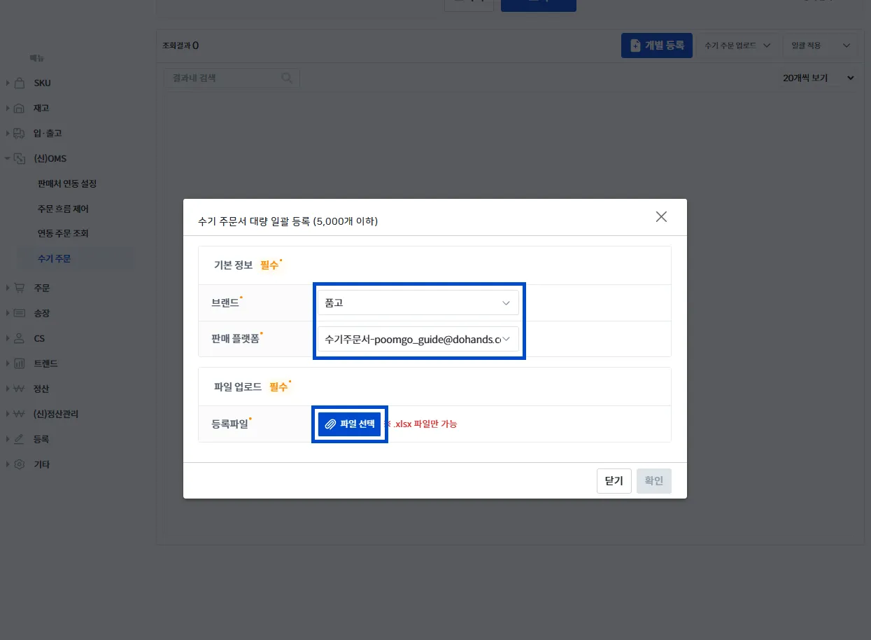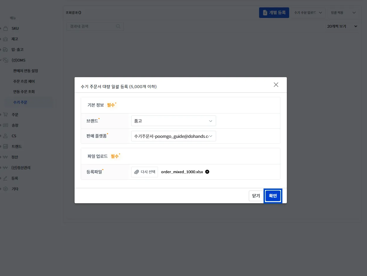 수기 주문 업로드