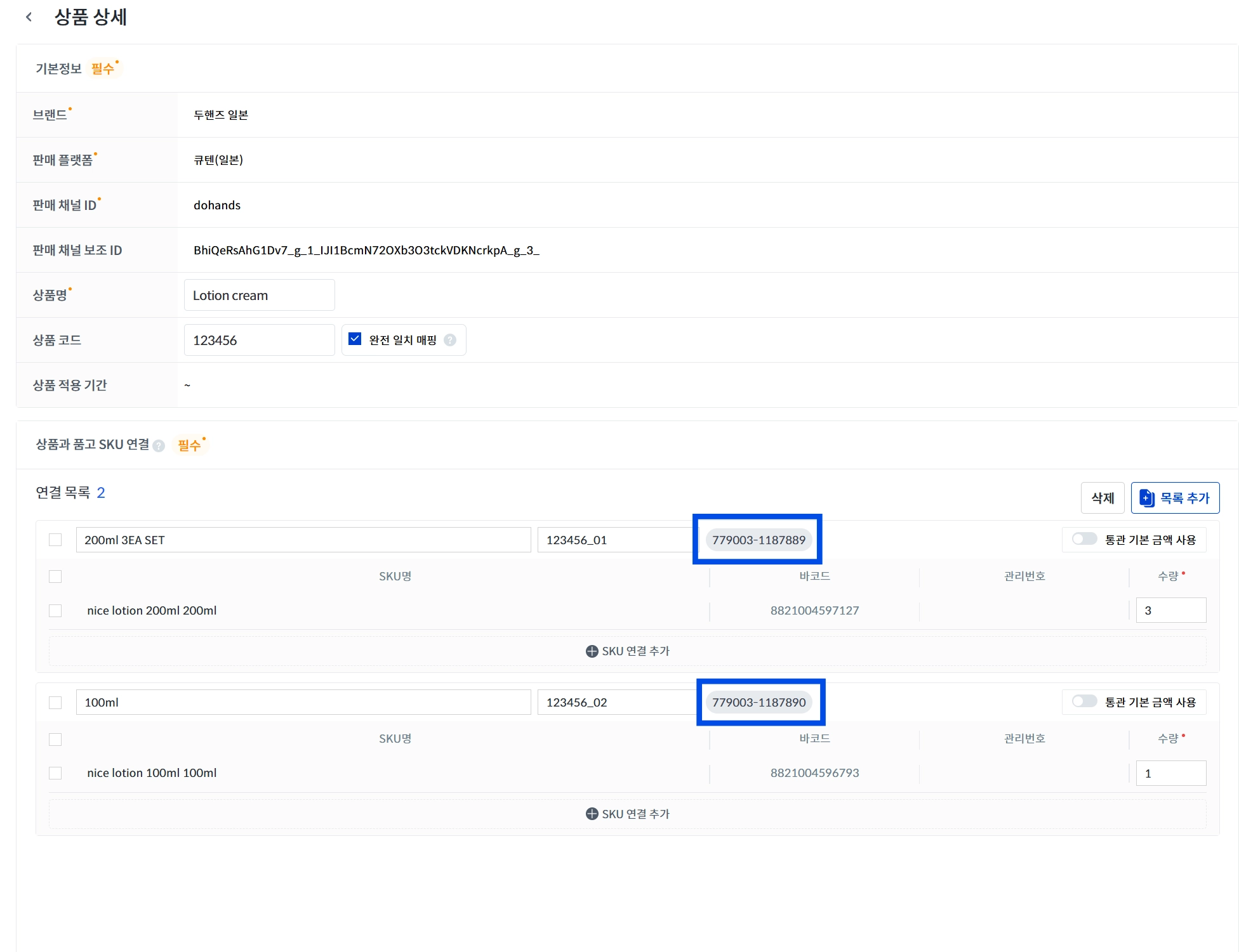 칸닷슈 SKU 일괄 연결