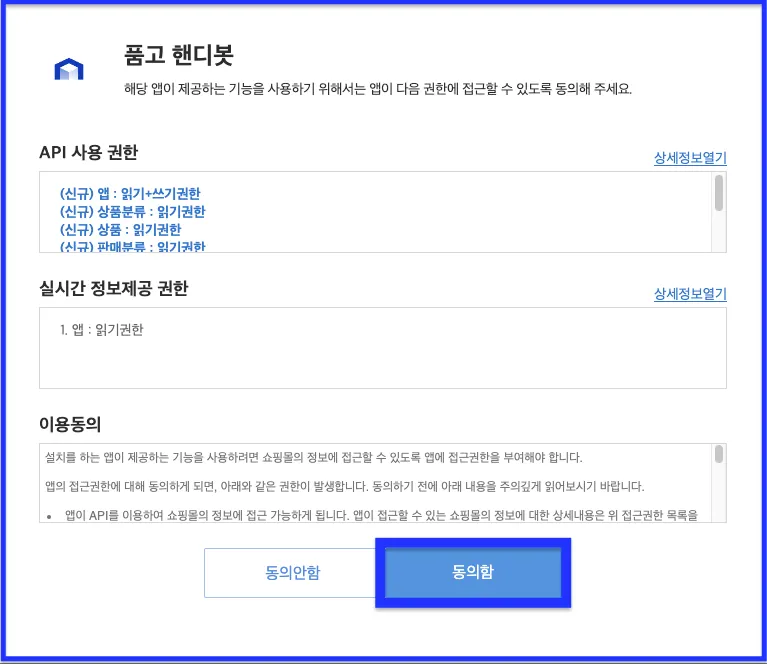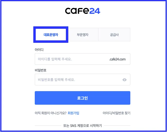 카페24 로그인 > 동의함 클릭