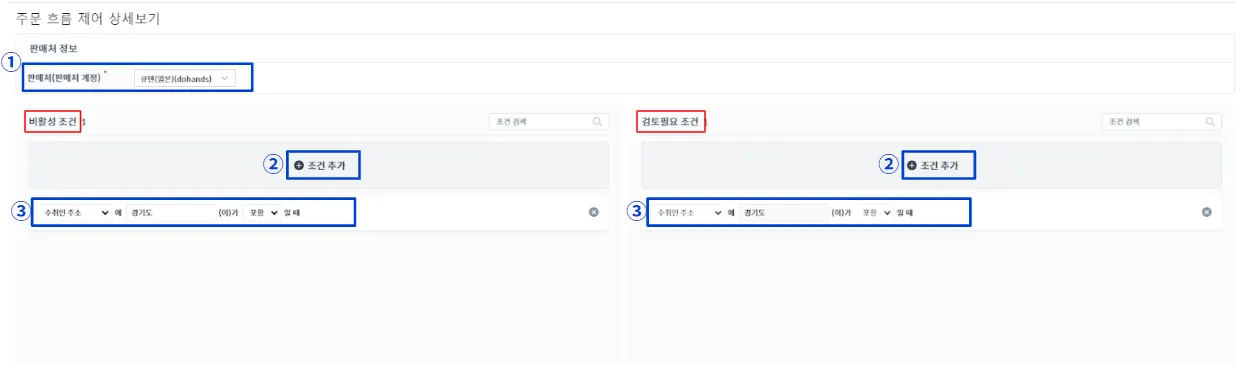 [2] 주문 흐름 제어 상세보기에서 조건 설정