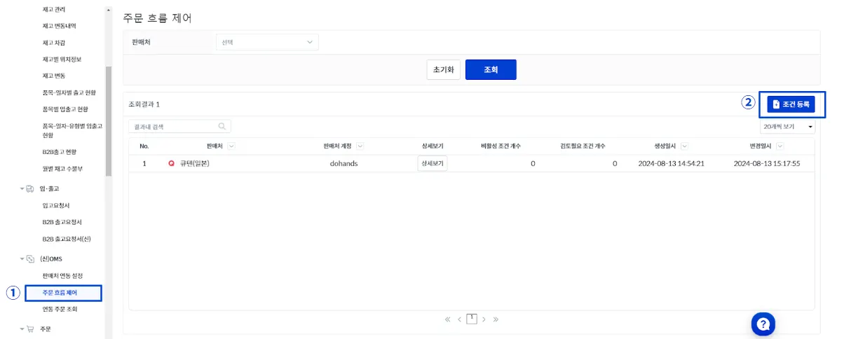 [1] 품고나우 → (신)OMS → 주문 흐름 제어 → 조건 등록 클릭
