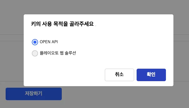 OPEN API 선택 후, 확인 버튼 클릭