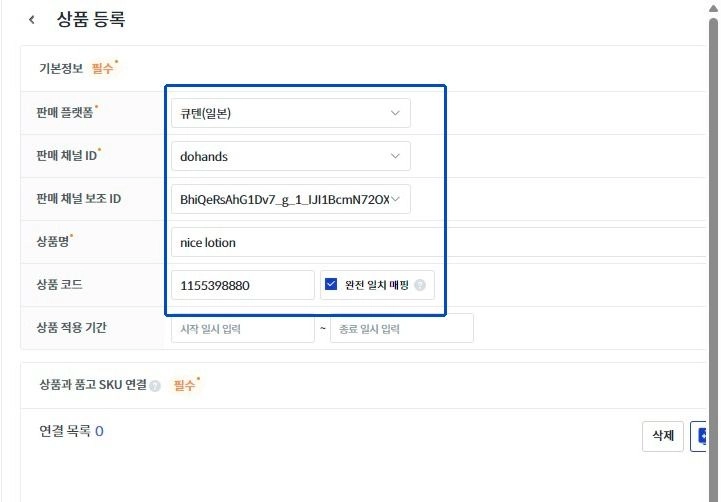 칸닷슈 및 일반 큐텐 연동 모두 사전에 상품 등록이 필요합니다.