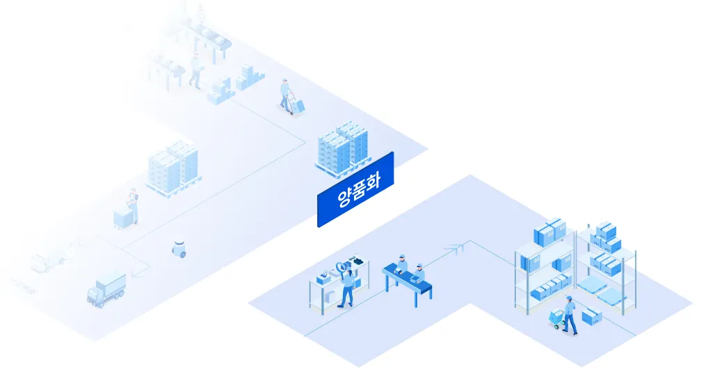 양품화가 진행된 재고는 진열 몇 전산 재고에도 자동 등록되고, 양품화가 불가한 재고는 반출 또는 폐기까지 책임지고 있어요.
