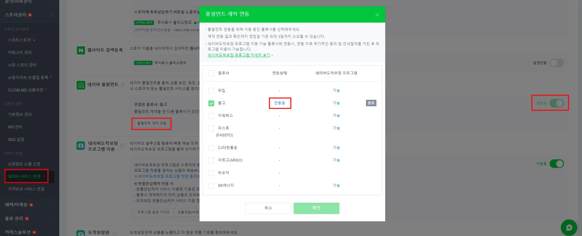 1. 풀필먼트 계약연동 완료 여부 확인하기