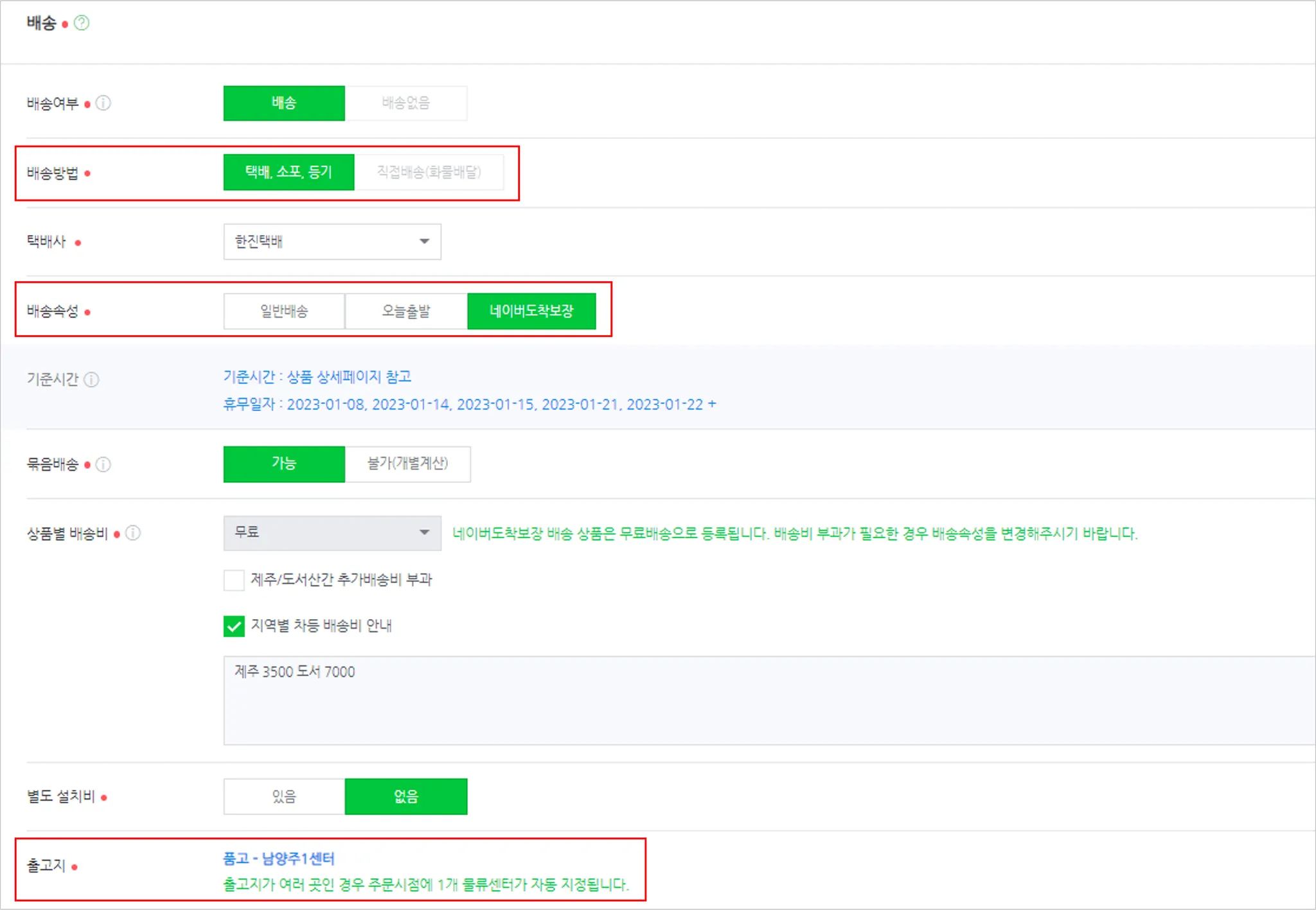 풀필먼트 연동을 켠 상품은 아래와 같이 스마트스토어 설정이 자동 변경됩니다.