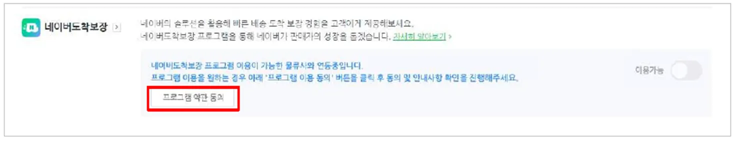 아래와 같이 화면이 표시되면 도착보장 프로그램 참여를 위한 약관동의가 완료됩니다.