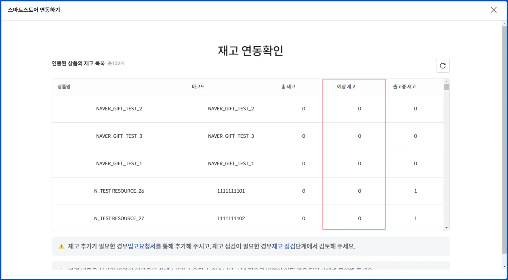 ③ 해당 화면에서 <예상 재고>의 유무를 확인해 주세요