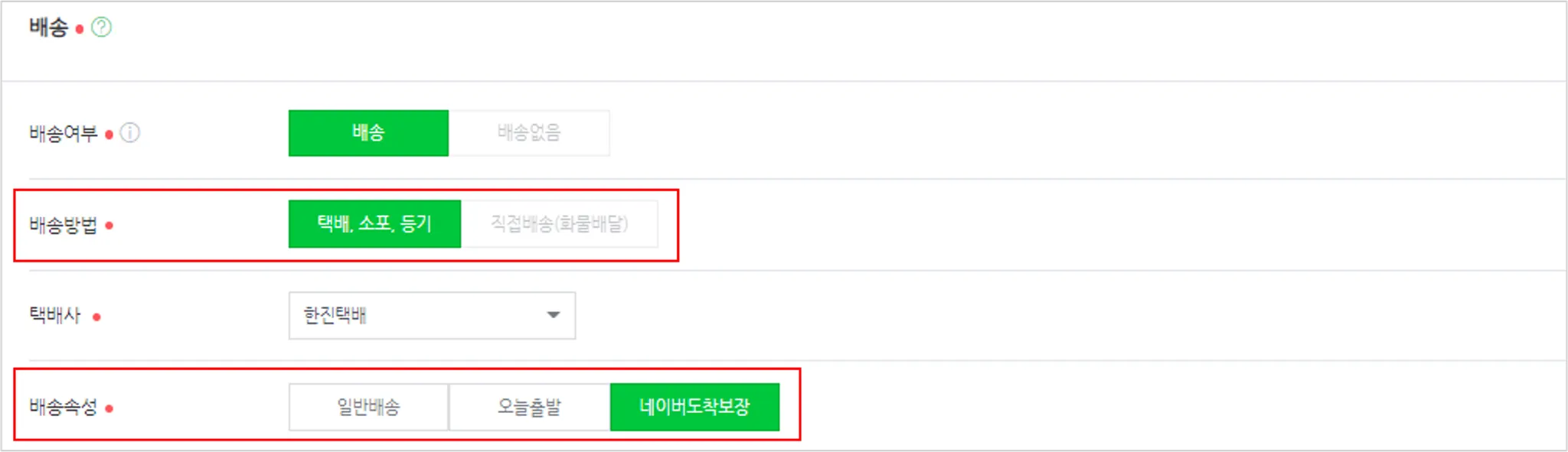 상품별 도착보장 사용 여부는 풀필먼트 설정의 여부가 아닌 배송 속성으로 관리해야 합니다.