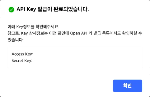 업체코드 / Access Key / Secret Key 복사 후, 전달