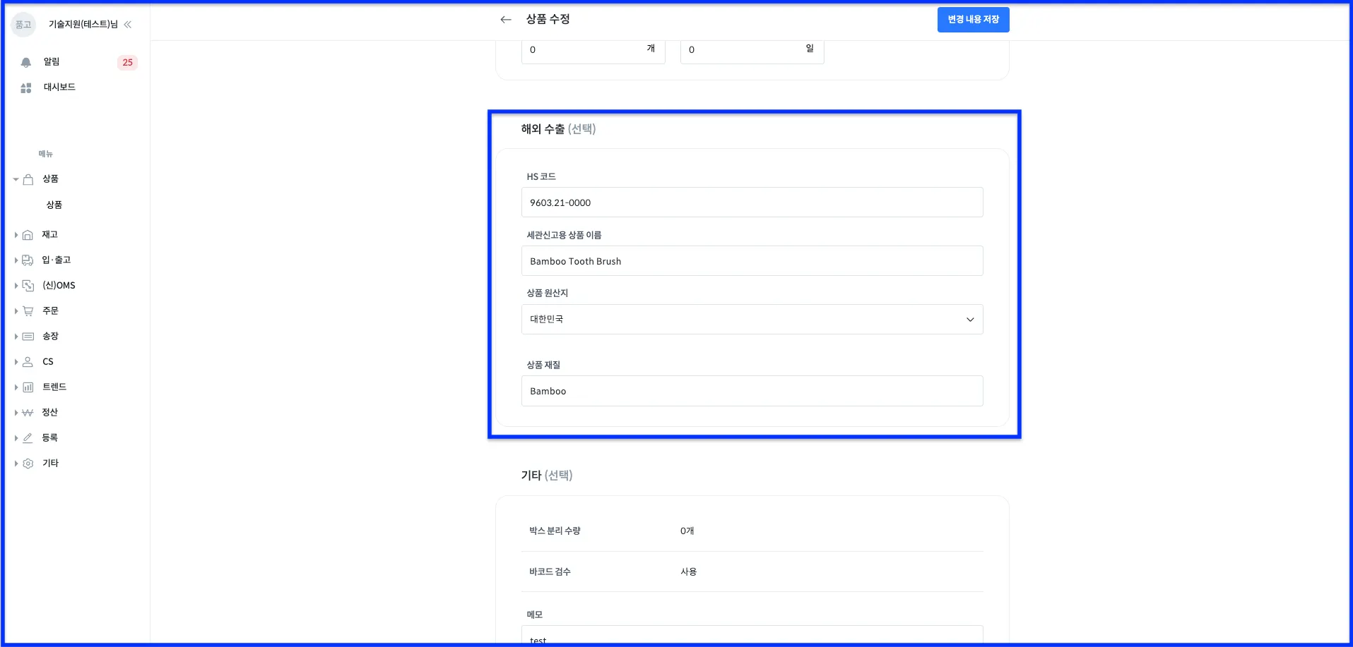 통관시 꼭 필요한 정보로 정확하게 기재가 필요합니다.