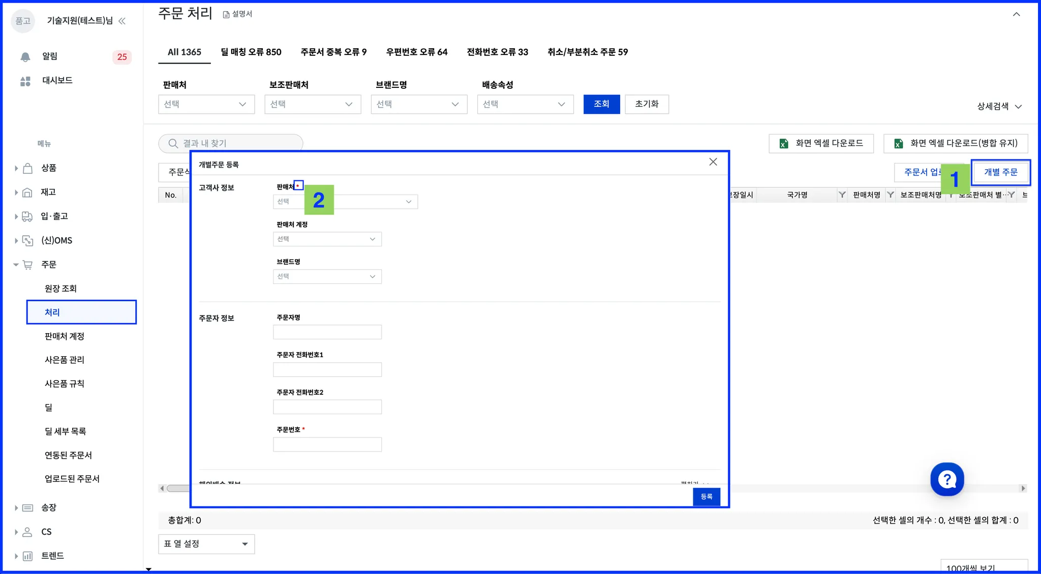 판매처 / 브랜드명(옵션) / 판매처 계정 선택