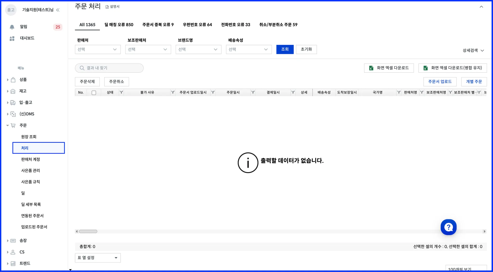 주문 상태에 별도의 표시된 값이 없다면, 오류가 없음