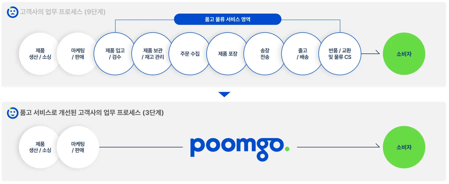 품고는 이커머스 셀러분들이 상품 기획과 마케팅에 집중하실 수 있도록 물류의 모든 과정을 지원하는 풀필먼트 서비스입니다. 제품의 입고부터 포장, 출고, 반품 처리 등 총 9단계에 걸친 물류 프로세스를 대행해 드립니다.