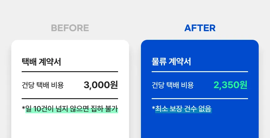 네이버가 제공하는 건당 택배비 1,000원 할인으로 월 최대 100만 원, 6개월 간 최대 600만 원 할인받을 수 있어요. 신규 판매자 분들이 낮은 비용 부담으로 도착보장을 시작할 수 있도록 출고비를 할인했어요. 월 물동량이 100건 이상인 브랜드라면 누구나 혜택받을 수 있답니다.